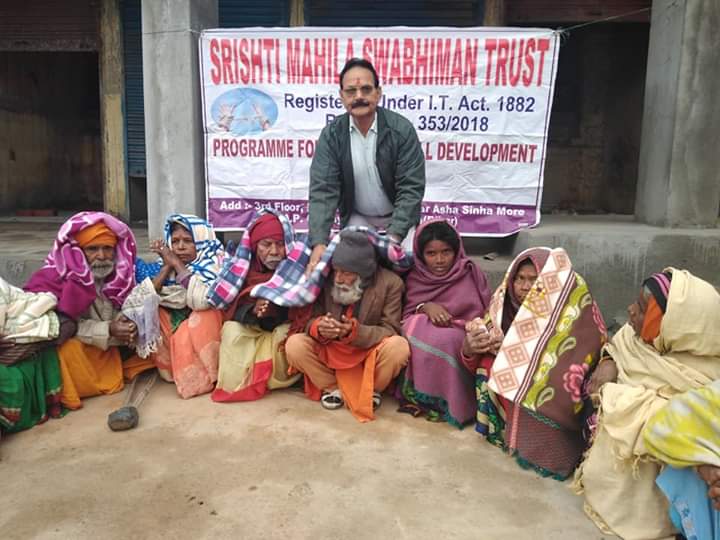 Kamble Distribution.04/01/2020 ko SMST ke sansthapak Dr. Ashwani kumar ne Mangla Gauri Mandir me Gareebo ke beech kambal ka vitran kiya.